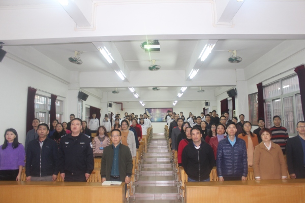 因天气原因,开学典礼转移到阶梯室召开。本次开学典礼共有六项议程。