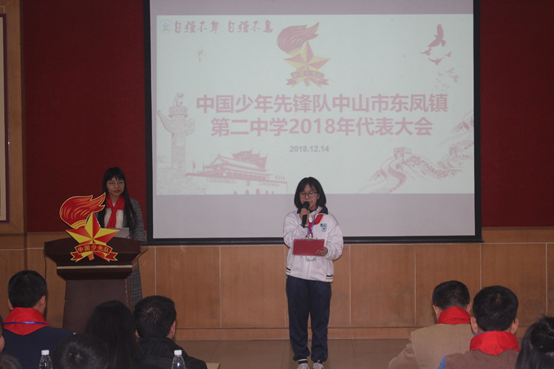 2018年12月14日下午,中国少年先锋队中山市东凤镇第二中学2018年代表大会在学校阶梯室顺利召开。