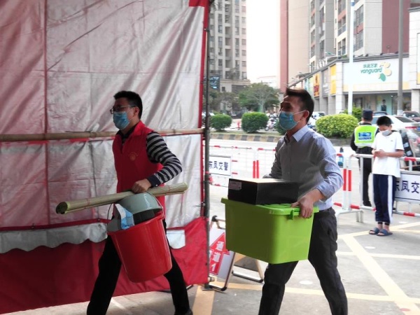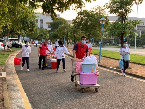 在经历了一个漫长而又特殊的假期之后,4月27日,东凤中学初三学生按照学校安排首批返校复学。为落实校园疫情防控工作要求,家长及陪同人员不能陪同住宿生进入校园,因此继疫情期间“停课不停教”、“教师变‘主播’”之后,学校党员教师再次转变角色,主动亮身份做表率,代替家长们帮助有需要的学生一起搬运生活用品到宿舍,穿梭在校园里的红色身影成了复学首日最闪亮的一道风景。