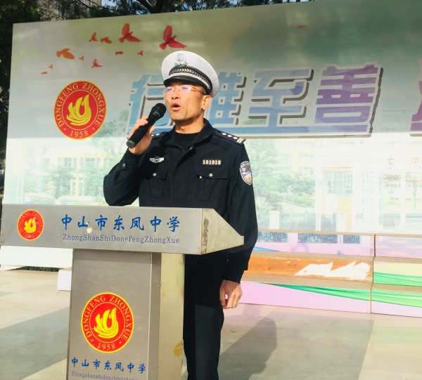 为进一步提高全体师生和家长的交通安全法律意识,养成自觉遵守道路交通法规的良好习惯,提高自我保护能力,预防和减少涉及学生的交通事故,2019年12月9日上午,东凤中学邀请了东凤镇交警大队欧锦浩大队长来到校园,为全体师生作交通安全主题教育。
