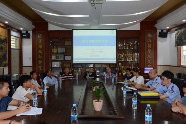 8月30日上午,2019年秋季开学在即,为保证新学期校车安全运行,东凤镇交警大队区锦浩大队长、东凤镇教育事务指导中心安全专干黄美英老师以及东凤镇交通分局的领导来到东海学校,对校车司机进行岗前安全培训。东海学校王强校长、德育处雷亮亮副主任、德育处张祥寨助理陪同,全体校车司机参加了培训会。