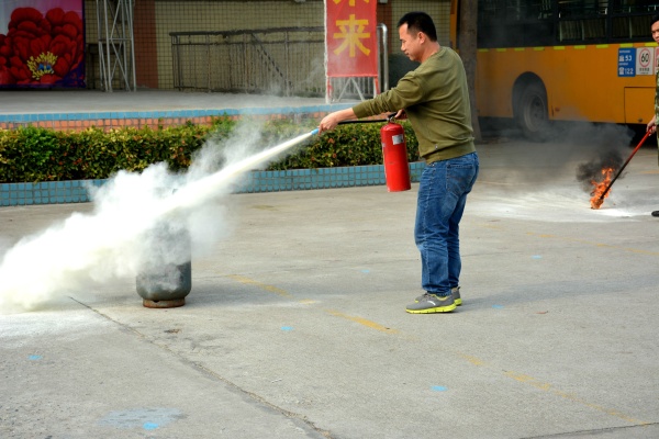 随后,东凤消防队林队长对向学生普及了消防知识和灭火器的用法,并现场演示灭火器正确使用方法。