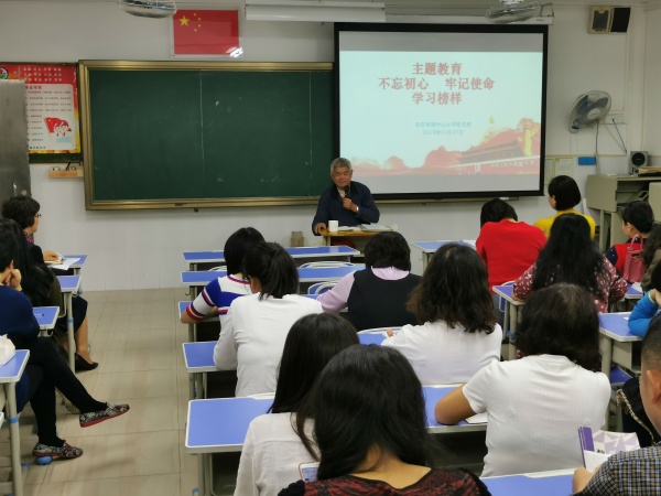 立足主题教育,学习身边榜样,聚焦爱国主义教育,为引领全体教师在中国特色社会主义伟大实践中砥砺前行、奋发有为。东区柏苑中心小学充分发挥社区党建联盟的资源,于11月27日下午,邀请广东省好人、中山市优秀党员、花苑社区的梁杰康老师给全校教师作了《不忘初心,牢记使命》主题教育的讲座。