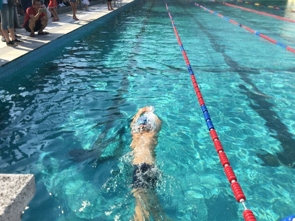 比赛现场,同学们劈波斩浪,奋勇拼搏,成绩喜人。男生们角逐激烈,呐喊阵阵,女生们巾帼不让须眉,你追我赶。入水,伸展,划水,移臂,蹬水,动作有模有样,令人赏心悦目。