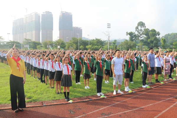 9月9日上午,为了激发学生的爱国主义情怀,培养学生的爱国主义精神,东区朗晴小学少工委邀请中山市国防教育训练基地教官来校开展爱国主义教育活动,全体师生参加本次爱国主义教育活动。