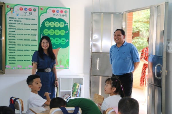 谭书记一行参观了朗晴小学校容校貌,详细了解了学校开学情况,认真听取了该校郑凤姚校长的工作汇报。谭书记对朗晴小学校园文化建设、教师阳光积极的工作状态等整体发展态势给予高度评价,对学生的自信大方给予充分肯定。他指出百年大计、教育为本,尊师重教是中华民族的传统美德,他感谢教师们为东区教育事业发展付出的辛勤劳动,也勉励广大教师进一步增强责任感和使命感,胸怀大局,志存高远,为东区教育事业发展做出更大的贡献,区政府也会尽最大努力提升教师们的幸福指数。他还叮嘱郑校长要关爱老师,同时加强师德建设,巩固和发展学校取得的各项优异成绩,打造更具影响力的朗晴品牌。途中,谭书记一行进入课室,与孩子们亲切互动,询问孩子们的学习生活情况,并鼓励孩子们勤奋刻苦,天天向上。