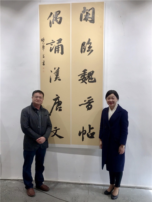 此次展以“传承”为主题,再贴切不过,德艺双馨的骆培华先生与其弟骆建华先生幼承庭训,临池不辍,各有所成,并对其儿女接续薪传;骆氏兄弟二十年来为推动当地书法艺术的教育传承与发展不遗余力,雍景园小学亦是受惠单位之一,今年上半年雍景园小学有幸聘请骆培华担任学校的“中华优秀传统文化”教育顾问,为雍景园小学“中华优秀传统文化”学习的发展指引方向。再者是骆培华先生对书法艺术的执着追求,为我辈做出了榜样。骆培华先生的书法,从唐楷入手,后博涉诸家,受宋代文人的尚意书风影响,尤其着迷于东坡居士。其书法作品弃时风而得古蕴,内在精神、气质、神完气足,正所谓书如其人。骆培华先生除书法创作水平高之外,在文学诗词歌赋上均有深厚功底,“闲临魏晋帖,偶诵汉唐文”,这是骆培华先生此展中的其中一幅自撰自书的行书对联作品。作品气势磅礴遒劲有力的笔触,如磐石一样厚重的字体,有着强烈的书写艺术感染力,这或许正是骆培华先生日常学习的自谦,丰富的人生历练,高尚的人格涵养,厚实的文化底蕴,又岂能是“闲临与偶诵”中能得。