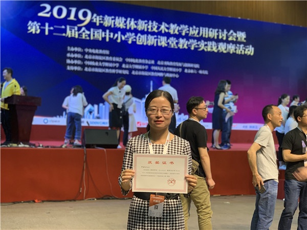 为进一步交流研讨信息技术环境下的课堂教学变革,互动分享典型经验和优秀案例,促进信息技术与教育教学创新发展,2019年5月25-28日,由中央电化教育馆主办的“2019年新媒体新技术教学应用研讨会暨第十二届全国中小学创新课堂教学实践观摩活动”在北京海淀区举行。中山市东区雍景园小学宋晓玉老师携全国中小学创新课堂教学录像课比赛一等奖课例《谁跑得快—ScratchJr编程项目学习》代表广东小学信息技术学科进行了现场上课和说课,受到专家评委和现场观众的一致好评,获全国一等奖。