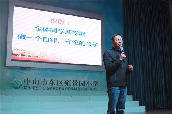 新学期伊始,为加强学生思想道德教育,规范学生的日常行为, 雍景园小学三年级组于2月25日下午,在风雨球场召开了主题为“成功从自律开始”的级组会议。本次会议由级组长巫朝安老师主讲,德育处郭杨德主任做了总结点评,三年级全体师生参加本次会议。
