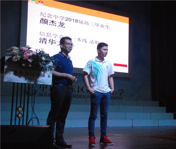 紧接着,莫星华老师开展了主题为《遇见未来,携手同行》的讲座,讲座开始部分,他请来了市纪念中学高三并刚被清华大学录取的颜杰龙同学讲述了自己的成长历程。他说良好的家庭氛围、父母耐心的陪伴和民主的教育方式,对他的成长有很大的促进作用。接着,莫老师把他对教育的理解、对亲子阅读的体会、对新生家长的希望一一进行了分享,赢来家长们的阵阵掌声。