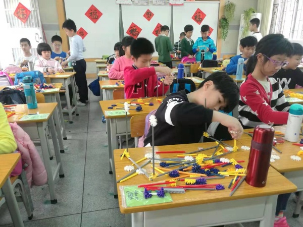 经过一节课的努力,社团老师和同学已经从场地布置,教具学具准备,展示内容等都做好了精心安排。两点五十分,展示活动正式开始。首先是一二楼同学在老师的带领下有序参观三四楼各场室的社团成果展示。接着是三四楼同学在老师带领下有序参观一二楼各场室的社团成果展示。