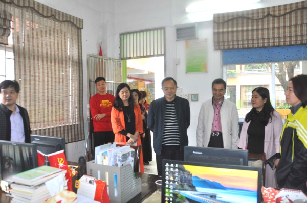 2月18日上午,邓华委员一行到达竹苑小学后,细致了解了学校新学期开学典礼情况,走进教师办公室,向老师们致以亲切的新春问候,并与老师们进行了对话交流,了解老师们工作生活情况。在范柳娟校长的带领下,邓委员一行巡查了学校部分功能场室和拟进行改建的教室,认真听取学校反映的需要帮助协助解决的问题。邓华委员一行对学校开学工作给予了充分的肯定,鼓励学校新学期里继续努力,再创佳绩。
