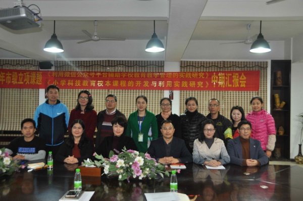 12月24日下午,在竹苑小学二楼会议室举行市级立项课题《利用微信公众号平台辅助学校教育教学管理的实践研究》《小学科技教育校本课程的开发与利用实践研究》中期汇报会。出席本次会议的有课题主持人范柳娟校长、李余仙主任、两个市级课题组成员以及竹苑小学课题联盟第一小组的成员,还有来自中山市东区教育事务指导中心张卉丹老师。