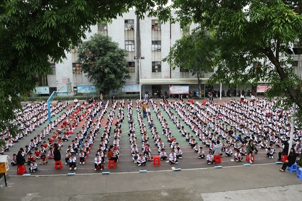 最后,在贺律师的倡导下,全校师生沐着朝阳在国旗下庄严宣誓:“加强法制教育,创建法制校园”。