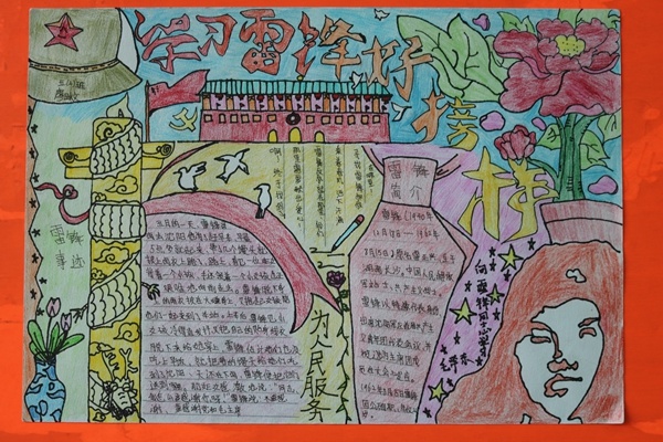 高年级组为大力宣传雷锋精神的时代意义和学雷锋先进典型,组织学生用手抄报的形式,加深学生对雷锋精神的认识和理解,促使学生自觉主动地在学习生活中时刻关注雷锋精神,长期形成学雷锋的氛围。