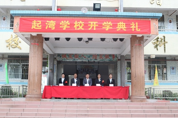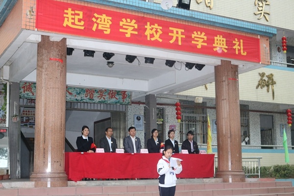 上午9:00,起湾学校全体师生齐聚操场,举行本学期第一次升旗仪式暨开学典礼。首先进行的是升旗仪式,同学们高唱着国歌,目光注视着五星红旗,心里面充满了对新学期的憧憬。