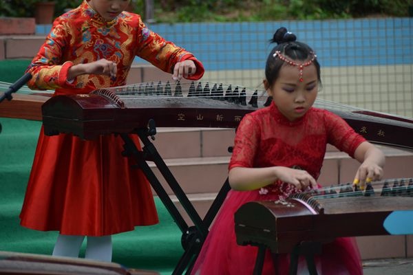 文艺汇演正式开始了,新海民乐团带来的是民乐合奏《采茶扑蝶》,小演员们技艺娴熟,配合默契,曲调明快,表现出了茶农劳动的乐趣和热爱生活的愉快心情,引得台下观众掌声不断;校园小主播社团的快板《元旦喜乐诵》让大家耳目一新;扬琴重奏《凤阳花鼓》,曲调婉转,地域风情浓郁;舞蹈社团的《飞旋的梦》,演员们舞姿翩翩,基本功扎实,给观众带来了视觉盛宴;古筝社团送上的是旋律明快、充满喜气的《春节序曲》,表现了传统节日了里的热闹场面,台下观众一片欢呼;“少年强则国强,少年智则国智------”铿锵有力的诗朗诵《少年中国说》让人热血沸腾,激起强烈的爱国之情;琴棋书画展节目,同学们现场展示才艺,挥毫泼墨,挥笔作画,棋逢对手,伴随着美妙的琴声,这一切如诗如画,让大家领略到中国的传统文化的魅力,不断地发出叫好声。接下来的讲故事、英语话剧、竹笛演奏、手指操、二胡合奏等节目一个比一个精彩。最后整场演出在小百合合唱团美妙的歌声中结束。虽然天公不作美,寒风伴着小雨,但却阻挡不住观众观看的热情,现场气氛热烈,掌声此起彼伏。