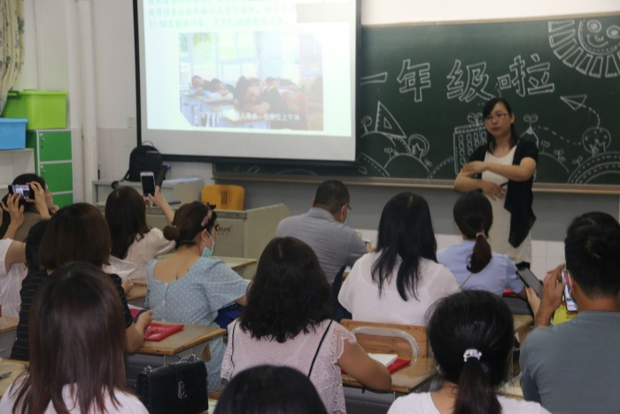 第二议程在课室开展。会前,一年级12位班主任准备了详实的课件,并对课室做了精心布置,黑板上或写着欢迎家长的标语,或画着温馨的图画,家长们一走进教室,就能感受到融洽、和谐的氛围。会上,各班分别以“和孩子一起成长”、“陪着孩子一起长大”等为主题召开本学期首次家长会,向家长强调了学校的日常管理要求和小学生需要遵守的行为习惯。