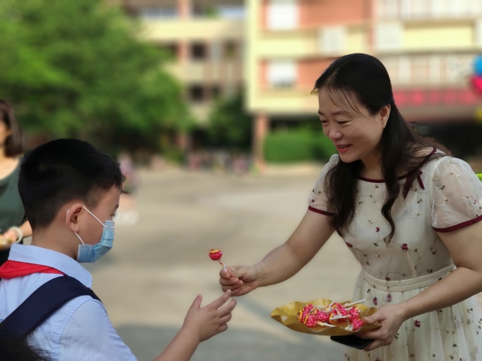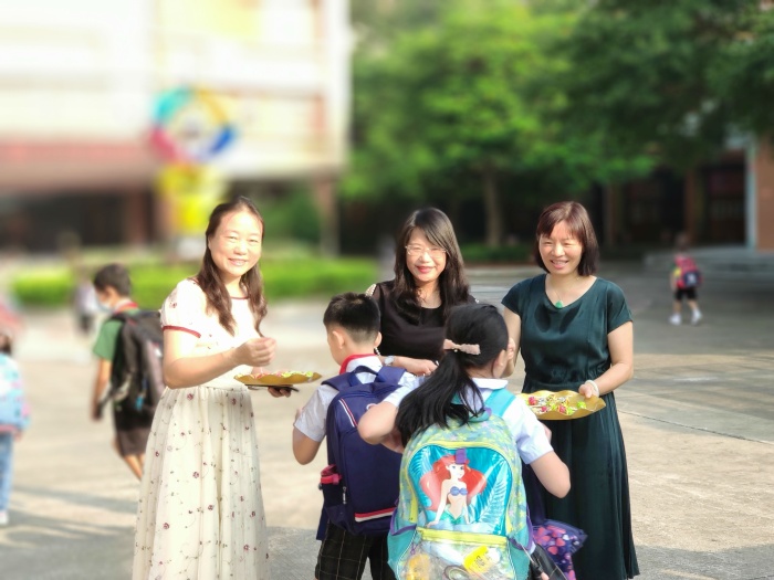 9月1日,东区朗晴小学一派喜气洋洋,校门口熊猫和小丑欢快地迎接师生返校。郑凤姚校长带领全体行政为孩子们派发棒棒糖,寓意新学期“学习棒、生活棒、身体棒!”值日教师、保安、家长志愿者、辅警、民警等在校门口精心维持秩序,为学生保驾护航。
