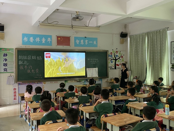 下午,学校开展了以“向祖国妈妈献礼:我节约,我光荣!”为主题的班会活动。一到三年级主要通过讲勤俭节约小故事来引导队员们如何节约粮食,提倡节约新风尚。四到六年级的队员主要是通过小组讨论的形式来讲述自己以后生活中关于节约的实践活动。在国庆中秋双节来临之际,全体学生郑重许下承诺:争做勤俭节约好少年!有学校的积极倡导,有老师们的悉心教育,相信队员们定能树立节约意识,珍惜粮食,形成节约粮食的文明风尚。