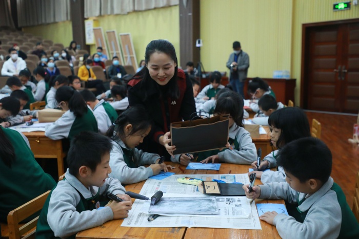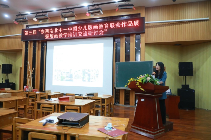 26日,在该校朗言厅内,珠海容闳学校常务副校长、教育部“国培计划”美术学科专家常晓冰作题为《通过艺术的教育—唤醒·生命系列艺术课程分析》的主题报告,广东省特级教师、岭南少年儿童版画教育研究会会长王鹏发表题为《岭南少儿版画之“东西南北中”》的讲话,东区街道教育和体育事务中心赵海宾以《东区美术特色学校建设》为题,介绍了东区版画特色项目。