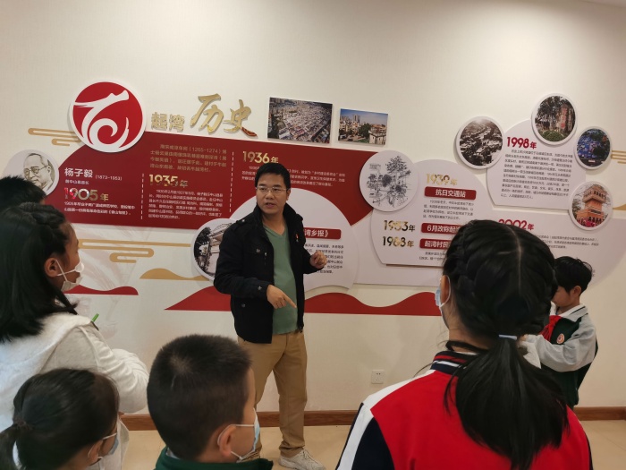 吴书记首先带领着队员们参观了起湾社区三个有代表性的阵地。在阵地中,书记一边讲解阵地含义,一边用儿童化语言诠释十九届五中全会精神。吴书记深入浅出,用六个字“坚决、坚定、坚持”表决心,并解释了如何在队员生活学习中做到这六个字的内涵,如何去理解党的知识。还生动形象地讲述了一些感人的英雄故事。