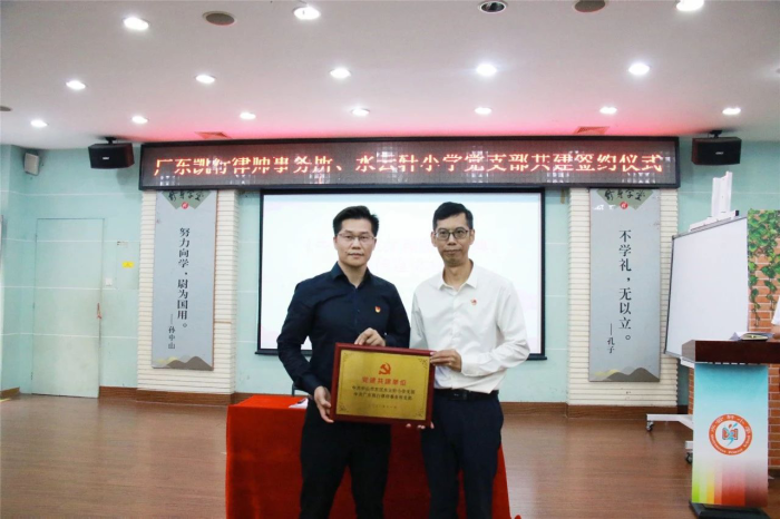 为深入学习《民法典》,充分认识颁布实施民法典重大意义和实践要求,助推依法依规治校,促进文明校园建设。11月4日,东区水云轩小学党支部书记林小舟同志与广东凯行律师事务所党支部书记、主任朱志强同志分别代表各支部签订共建协议,推进支部之间阵地联享、组织联动、活动联办、党员联训、发展联促,构建联动共建、互助共赢的新格局。
