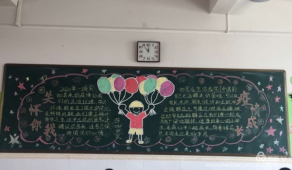 此次活动,全体师生积极参加,用心准备。同学们都能积极参与。在老师的指点下,各班负责黑板报的同学们采用多种途径查阅、收集有关新冠肺炎的资料,精心选材并设计方案,仔细书写、细致描画,创作出了一幅幅主题鲜明、内容丰富、图文并茂、形式新颖的优秀板报作品,按期完成了“关怀你我,‘疫’境成长”的黑板报宣传活动。虽然有些同学并不是十分懂得绘画的技巧,但是他们仍然努力将所有力所能及的事情做好。例如他们争着出主意,精神抖擞地站在一旁随时做好递接的协助工作。