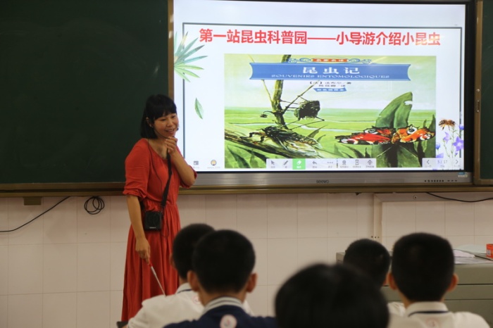 调研组先听取了东升中学初二年级语文学科吴银芳老师执教的《昆虫记》名著导读课,并在课后针对执教教师的课堂教学情况给予全面的评价,充分肯定教师教学工作的亮点,同时也对教师提出中肯的意见和建议。听课专家一致认为,吴银芳老师以小组合作的方式,利用爱米云平台和希沃白板,充分挖掘和发挥智慧课堂的潜力;与此同时,吴老师还结合“先学后教、小组合作、当堂训练”高效课堂教学模式,让学生从被动学习转化为主动学习,切实实现了将课堂还给学生。