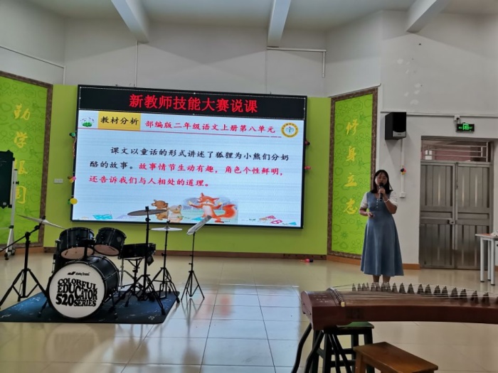 大赛内容包括说课、新课程标准知识测试、才艺展示和粉笔字等几个方面,以此来考察教师教学能力。学校三位青年教师参与了本次大赛。在说课环节,各参赛选手准备充分,教学过程设计合理,语言表达准确生动,教学方法独特新颖。选手们说课自然流畅、端庄大方,富有创意的语言,挥洒自如的仪态彰显出了青年教师扎实的教学基本功以及洋溢着朝气与热情的风采。仇志诚老师的说课内容《蹲踞式起跑》,以活泼轻松又不失严谨的说课风格赢得大家的掌声,接着肖惠支老师的说课《乡下人家》带领大家领略了乡下的自然风光,最后王文暖老师的说课内容为《狐狸分奶酪》,给大家呈现出一节非常精彩的低年级课程。接下来,三位选手分别进行了才艺展示以及粉笔字书写,展示了自己的综合素养。