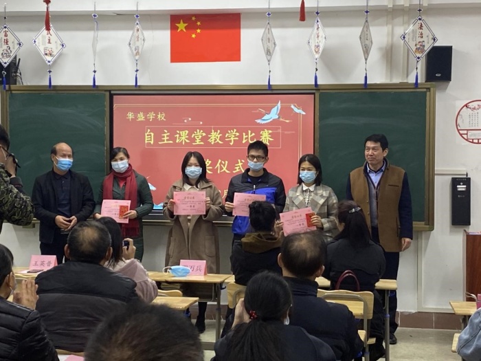 三位科组长分别总结后,教务处主任宣布了本次“自主课堂”教学比赛中获奖老师名单。李春红老师、黄亦成老师、吴恩妮老师、赖素文老师获得一等奖;周金风老师、张秀梅老师、黄华微老师获得二等奖;欧锦清老师、张根秀老师、何晓丹老师获得了三等奖。由颁奖嘉宾分别对获奖的教师颁发了荣誉证书和奖金。