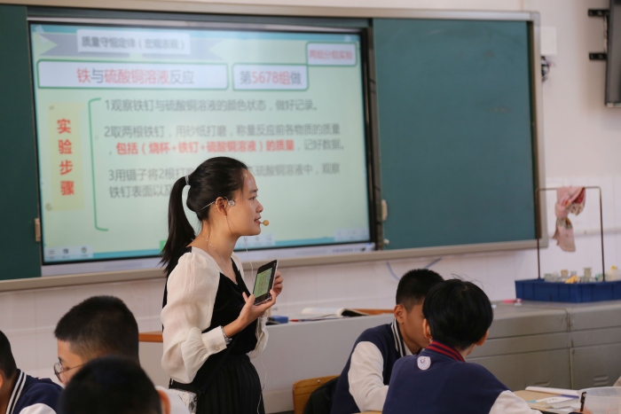 赛后评委陆朝宁校长对参赛老师的课做了精准精彩的点评。他指出:韦凤立老师的课充分体现了学生的主体性,先学后教理念;梁凤仙老师的课注重引导学生如何进行实验探究;董建清老师的课主线清晰,以波义耳、拉瓦锡两位科学家的研究对比引入,引导学生对待实验态度严谨,否则重大的科学发现将与你擦肩而过。而方琦真老师的课语言富有感染力,课堂上能熟练运用希沃白板5,将学生分组探究实验的投屏分享,引导学生积极思考。