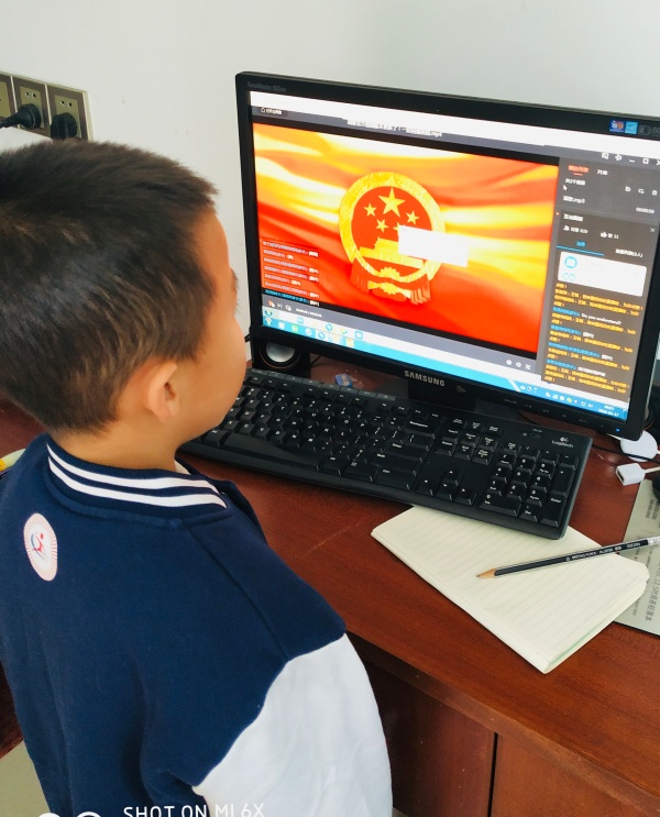 早上9点整,胜龙小学全校23个钉钉班级群同时开通,全体师生精神饱满地站在家中手机或电脑屏幕前,进行了庄严的线上升旗仪式。伴随着雄壮激昂的《义勇军进行曲》,屏幕中的五星红旗迎着初升的太阳冉冉升起,全体队员面向国旗敬队礼,目光注视着国旗,高唱国歌:“起来,不愿做奴隶的人们……”每一天,孩子们都在无时无刻地关注着疫情发展,全国人民抗击疫情的画面时刻冲击着大家的眼球。此时此刻,孩子们热血沸腾,他们以整齐划一的队礼、铿锵有力的歌声向所有奋战在防疫一线的“最美逆行者”们献上最诚挚的敬意,大家的心中更多了一份责任感和使命感!