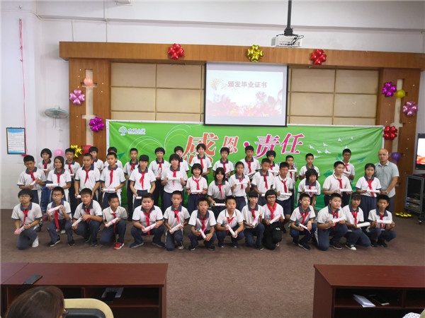 接着毕业生代表与家长代表分别用真挚的话语表达了对母校的依恋,对老师的感激。接着,吴焕林校长为毕业生郑重地颁发了毕业证书,同学们依次上台,领取人生第一张正式的毕业证书——小学毕业毕业证。