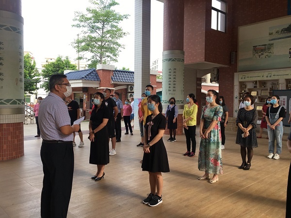 活动伊始,裕民小学全体教职工齐聚风雨走廊,认真聆听陈福业主任解读演练方案,明晰人员分工、职责和有关要求。随后,疫情防控应急演练正式开始。本次疫情防控演练是针对开学复课后学生管理的实际场景,结合校园环境特殊性,重点模拟以下情景。