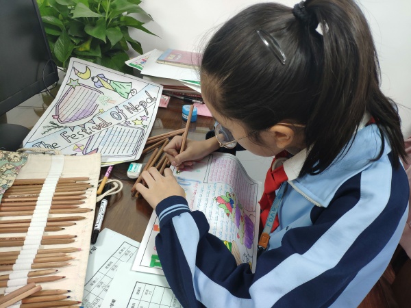 活动结束后,六年级的陈素茵同学高兴地说:“在搜集资料的时候,我读到了许多关于尼泊尔的文化知识,还了解到了尼泊尔的一些风土人情,从而加深了对南亚国家的认识,十分有趣!”而四年级的陆佳韦同学却无比自豪地说“从搜集资料、版面设计、色彩搭配到英语书写,全是我自己独立完成。手抄报的制作既锻炼了我的动手能力,又培养了我坚持不懈的决心。” ??