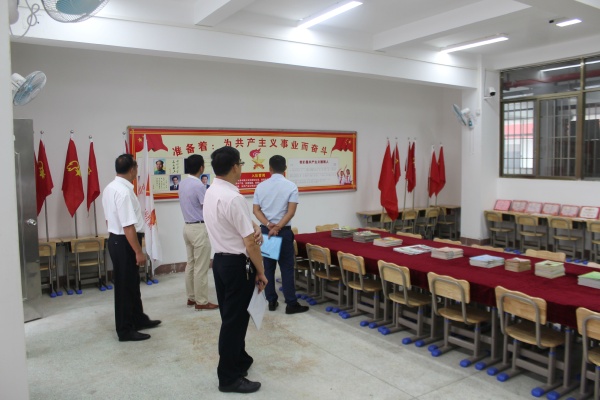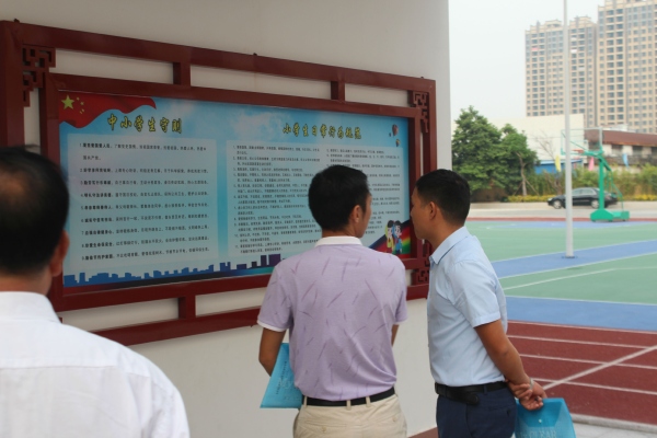 督导组和镇文体教育局领导来到学校后,在华盛学校校长王英普、主管德育的副校长李安科的带领下,首先从校容校貌和校园文化建设方面,分别巡视了校园文化墙,学校食堂以及《社会主义核心价值观》、《中小学生守则》、《小学生日常行为规范》、《办学思想》、《办学目标》和《校风、教风、学风》的展示橱窗,再到教室文化布置和环境氛围等。均给督导组留下了深刻的印象。接着,督导组领导查看了学校的党员活动室、少先队活动室、班主任工作室、心理辅导室、广播室和监控室等硬件建设方面,督导组对华盛学校在德育的环境和经费保障方面给予了充分肯定。