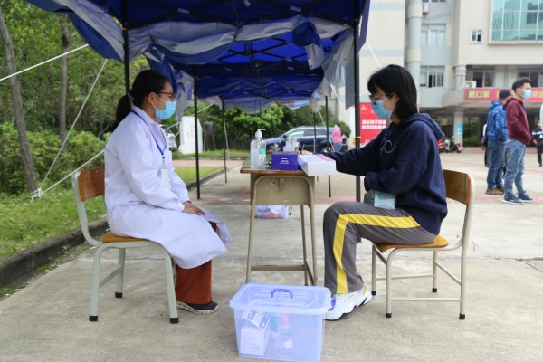 首先是组织初三级全体学生回校进行核酸检测。为进一步巩固新冠肺炎疫情防控成果,切实维护广大师生员工生命安全和身体健康,全力保障春季开学工作平稳有序,为复学提前做好准备。按照上级文件要求,东升中学24日早上8:00分时分批开展初三学生新冠病毒核酸检测工作。(校内行政人员、初三级教职员工和后勤人员的核酸检测采样工作已于4月17日完成。)东升中学吴耀光校长说:“对本次涉及初三年级返岗返校教职员工和学生,星空体育做到‘应检尽检’,为师生们的生命安全和身体健康筑牢防线。”在东升中学现场,学生根据学校通知的时间准时到校门口等候区,接受测温后进入校园,依次到采样点领取条形码和采集管,等待采样点“叫号”,每位同学排队间隔保持1.5米以上。采样现场设置了4个采样组,每个组有两名东升中学的教师协助登记信息和派发采集管,还有两名“全副武装”的医护人员。完成采样后,学生按指引路线有序迅速离开校园。