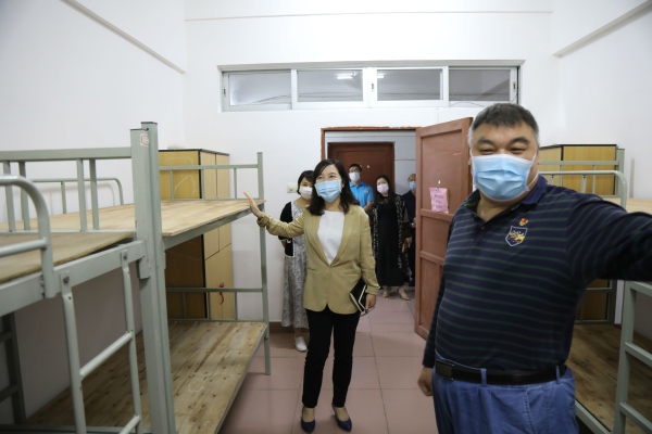 杨戈镇长指出,星空体育担负着教书育人和守护学生健康的双重责任,要始终把师生生命安全和身体健康放在第一位,以“细之又细”的态度完善复学疫情防控方案,筑牢校园战“疫”防线,找准学生复学和疫情防控工作关键环节,问题考虑更周到、应急方案制定更细致、准备工作做到更充分。另外,防控物资准备工作不可放松,要加强疫情防控知识宣传,要全方位做好学校卫生整治、全校师生的健康筛查和监测等工作;要实行师生封闭式管理,严格落实班额控制、间隔同向就餐、4人单间住宿等制度,做好公共区域的通风、消毒,构筑严密的校园疫情防控“防火墙”,全力保障教职员工和学生健康返校,确保复学后广大师生的生命安全和身体健康。