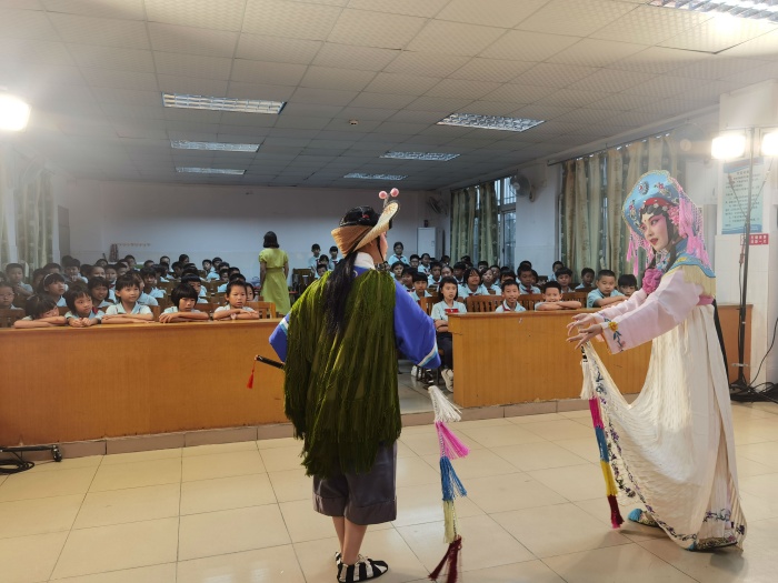 为加强学生的美育教育,提升学校美育教学水平,弘扬中华优秀传统文化,推动戏曲的传承与发展,9月23日下午,牛角小学举办“粤剧进校园”活动,广东香山粤剧院的演员们来到牛角小学为孩子们带来精彩绝伦的表演。