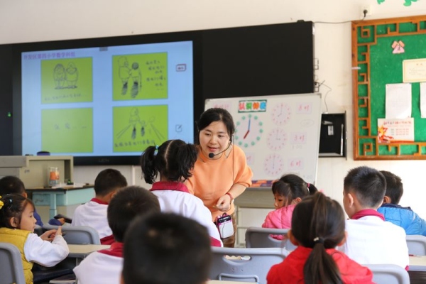 然后由阜小李亚林老师同上《认识钟表》一课。李老师由钟声引入,通过大量的生活实例和大量动手操作活动,最终在观察比较中认识钟表,并发展学生的空间观念。