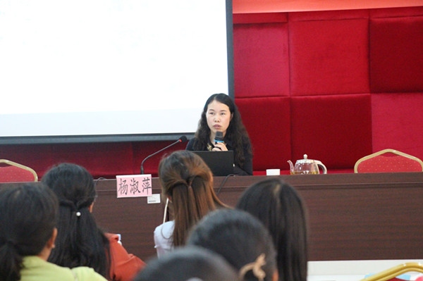 首先,南山区第二实验学校的杨淑萍老师结合自己的亲身经历,给在场的老师、家长、同学们讲述了她与家长之间相处的小故事。“家校共建”是班主任永恒的话题,也是班级建设中一股不可忽视的力量。讲座中对于一些经典的班主任难题譬如如何凝聚家长、团结家长,如何将家校共建的力量发挥得淋漓尽致等,杨老师如数家珍,倾囊相授。