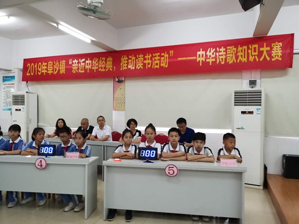 为加强中华优秀传统文化教育,激发学生学习中华优秀传统文化的热情,形成向上向善的社会风尚,从而推动阜沙镇书香校园读书活动的开展,2019年5月21日下午,阜沙镇教育事务指导中心在阜沙中心小学综合会议室举办了以“亲近中华经典,推动读书活动”为主题的中华诗歌知识大赛活动。