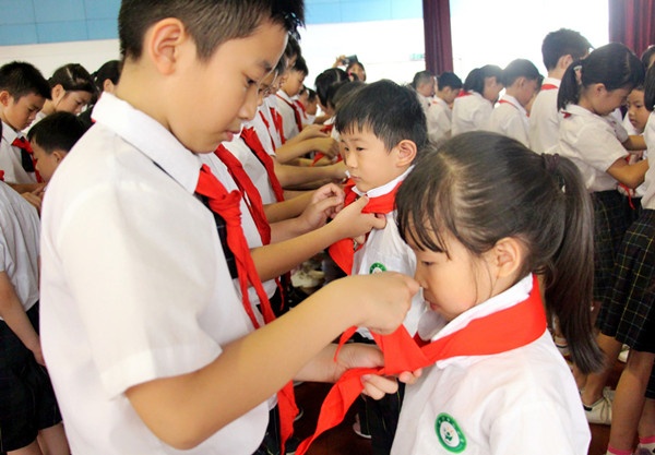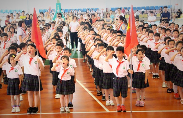 红领巾,是队员们胸前最活泼最亮丽的色彩;少先队,是队员们最温馨的精神家园和健康成长的摇篮。为引导队员们继承和弘扬少先队的光荣传统,增强少先队员的光荣感、自豪感,2019年5月22日下午,阜沙中心小学举行少先队大队新队员入队仪式,200多名新队员参加本次活动,100多位家长应邀出席,见证孩子的成长。