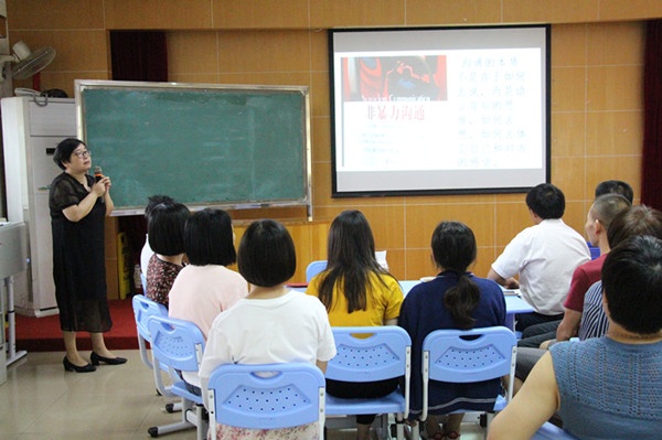 首先,周棠英老师分享了她所读的《五十六号教室》的心得。她提出做老师就要做像雷夫那样的老师,打造一个属于自己的幸福教室;张玉云老师分享了“短板效应”,警醒大家进入更加深刻彻底的生命内建;大家应该通过日常的自我清理、自我教育、自我规范,对自己进行反省净心。李伟霞老师分享了她读的《把班级还给学生》这本书,提出教师建立自己的“德育故事库、学生案例库、活动素材库和管理方法库”的重要性和方法。梁幸婵老师分享了她所读的《班主任班级细节管理》。她提出“家校联动培养学生良好礼仪行为”的重要性。徐淑萍老师分享了她读的《非暴力沟通》书籍,提出沟通新四步:观察、感受、需要和请求。最后,吴文海副校长分享了他读的《正面管教》书籍,提出对学生的管理要讲方法讲策略,不能只靠权威来压制,老师教育的孩子面向未来,要教会他们懂得尊重和沟通,教师自己一定要先尊重孩子并和孩子做良好沟通。最后,主持人强调了读书的重要性。她引用杨绛先生的话,鼓励大家读好书,好读书:“读书好比串门儿——隐身的串门儿。要参见钦佩的老师或拜谒有名的学者,不必事先打招呼求见,也不怕搅扰主人。翻开书面就闯进大门,翻过几页就登堂入室,而且可以经常去,时刻去,如果不得要领,还可以不辞而别或者另请高明,和他对质。”