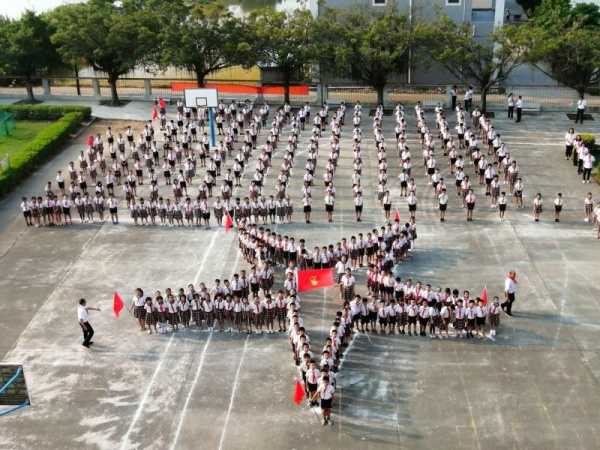 当出旗曲响起时,全校师生庄严肃立,全体队员静立且敬队礼,目送少先队大队旗进入会场。随后,在丰联小学大队辅导员林素涵老师的指挥下,全体队员随着伴奏齐唱队歌,嘹亮而铿锵有力的歌声萦绕在丰联小学的上空。
