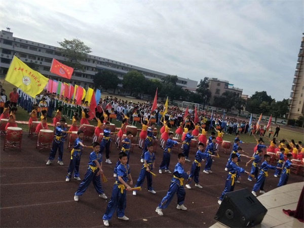 鼓是精神的象征,舞是力量的表现,鼓舞结合开舞蹈文化之先河。阜沙镇罗松小学的中国鼓表演一直是个特色,活跃在学校、镇区的各项文艺汇演活动中。接到任务以来,罗松小学曾锦绣、连丽虹、卢慧娴三位音乐老师组织近100名学生进行为期两周紧锣密鼓的排练,本次表演结合运动会的性质,融合了中国鼓、中国武术、花样独轮车三种形式,形式之创新、阵容之壮大皆史无前例。28日上午,庄严的升旗仪式过后,开幕式现场鼓声雷鸣、气势如虹,表演者踏着鼓点轻舞飞扬,中国武术表演者中气十足,独轮车表演者花样炫技,三种表演巧妙地融合成一体,视觉动作与听觉效果高度结合的表演形式炒热了现场。这场开场表演体现了罗小学子积极奋进、充满活力的精神面貌!震撼的鼓舞表演也激起运动员们的气势,两个镇区各个学校派出多名学生选手参加了本次运动会,赛出两镇友谊,赛出学生的精气神!