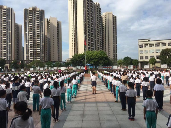 受今年第十三号台风“玲玲”的影响,外围环流带来的雨量把遥远的中山狂刷了一遍,雨后的罗松小学校园焕然一新,生机蓬勃。9月3日上午,罗松小学师生在经历了暴雨期的休整后满怀喜悦之情,迎来新学期首个升旗仪式暨开学典礼。