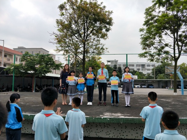 随着国歌声的最后一个音符的落下,升旗仪式就结束了。升旗仪式后,牛角小学在庄严的国旗面前,在升旗台前举行了3月份的文明班颁奖仪式。牛角小学德育处一直以来非常重视养成教育,并把“良好行为、卫生习惯的培养”确定为学校德育管理目标,提高学校的教育教学影响力。经过班主任一个月的辛勤耕耘,3月份文明班评比结果最终尘埃落定。主管德育的任思主任对3月份的文明班评比工作作了详细的总结,最后由黄凤英校长为获得“文明班”荣誉称号的班级颁奖。