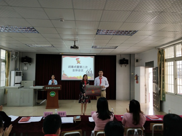 3月27日下午,学校全体少工委委员、少代会代表、全校的少先队员代表在学校的多媒体室见证了学校少工委的成立。梁锦康、吴雪仪和杜燕霞还有阜沙镇各个兄弟学校的代表出席了本次会议。